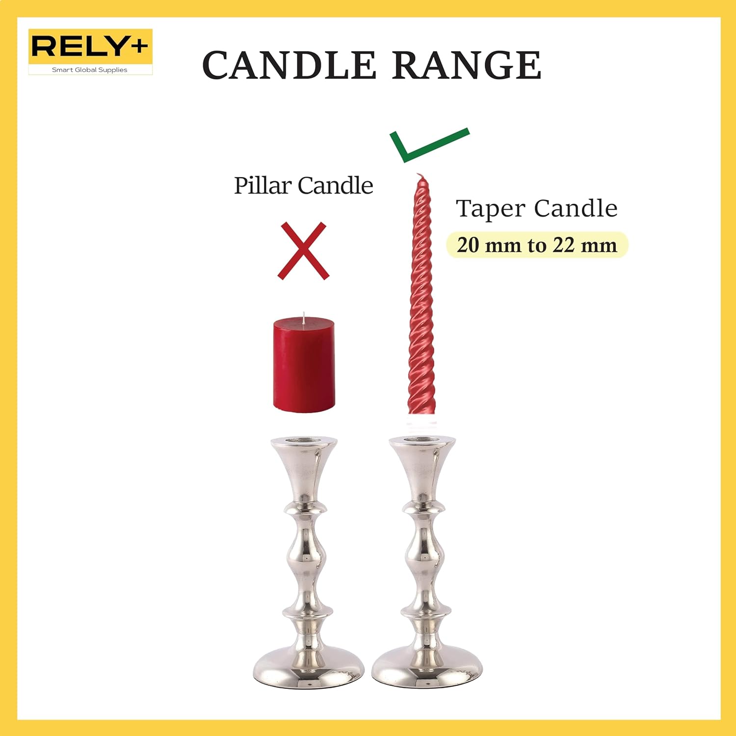 - ๐ธCANDLESTICK HOLDERS BULK Rely+ is committed to giving 100% Satisfaction to our customers and the best possible experience. If you have concerns related to our products, please feel free to contact us.