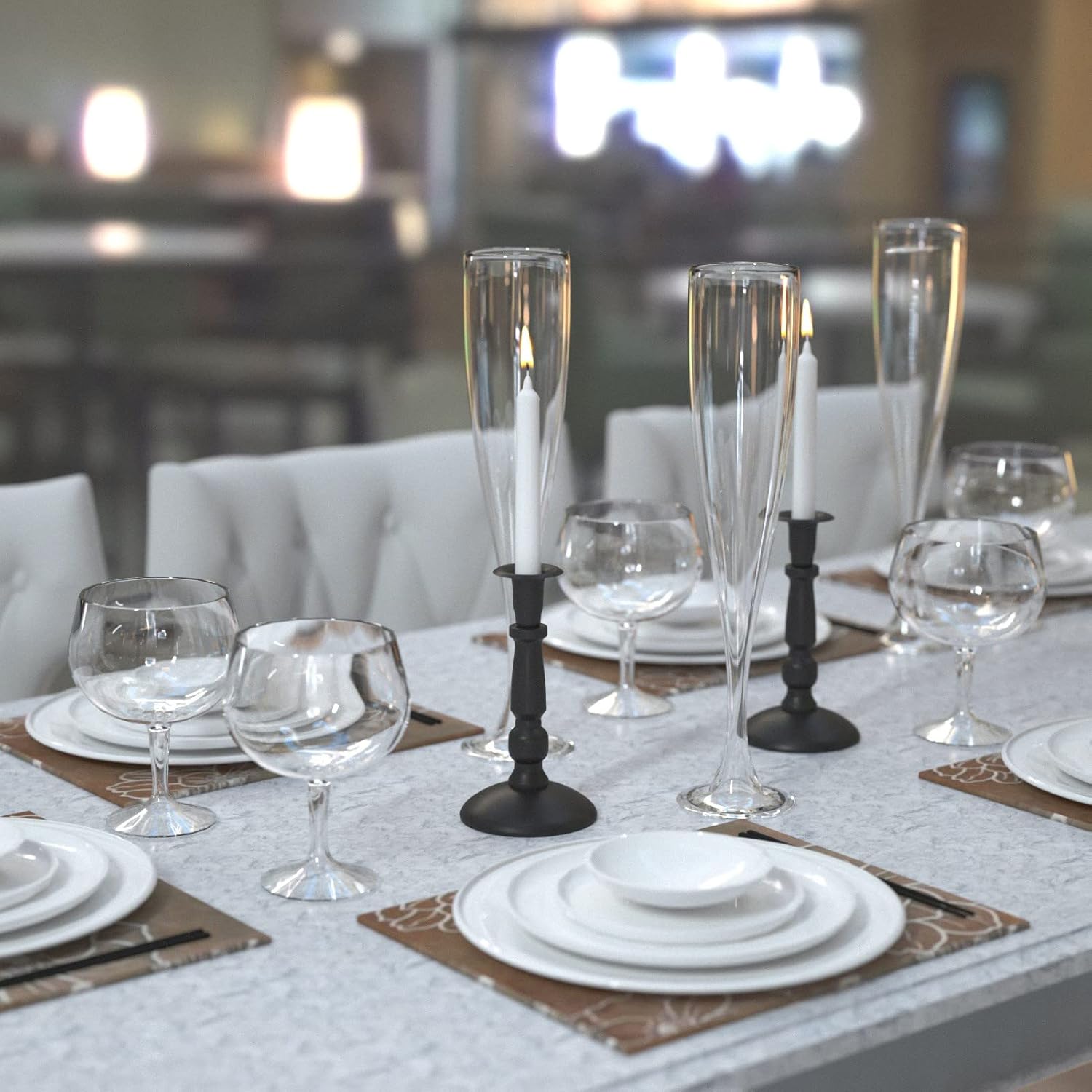 Designed for standard 7/8" taper candles, this candle holder requires no assembly and is ready for immediate use. Its compact footprint makes it easy to place on dining tables, shelves, sideboards, or mantels without overcrowding the space.