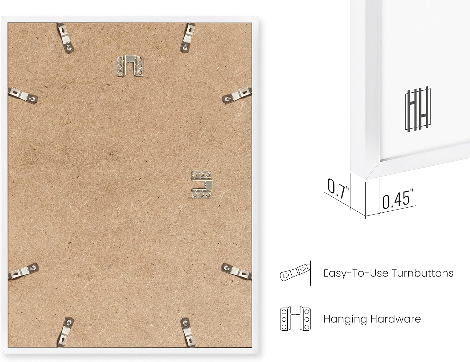 - PREMIUM WALL ART: Our photo frames 8.5 x 11 will add the finishing touch to your art or photograph. They're equipped with plexiglass covered by protective film and two metal hangers for horizontal or vertical hanging. For added convenience, our picture frames 8.5 by 11 is shipped in a durable box, securing their protection throughout transit.