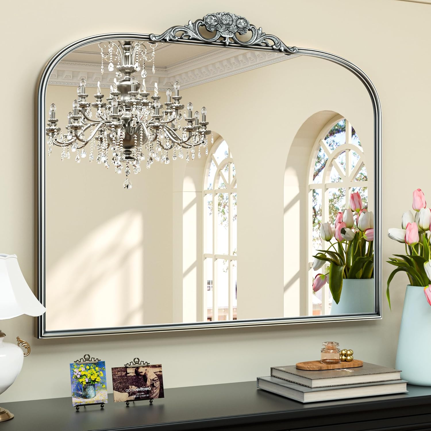 - 【Baroque-inspired Charm】 Keonjinn Antique Arched Mirror is a timeless piece designed to elevate your wall décor. Inspired by the opulence of the Baroque era, this mirror exudes historical charm with its graceful arched design and intricate wooden floral crown, creating a captivating focal point in any room.