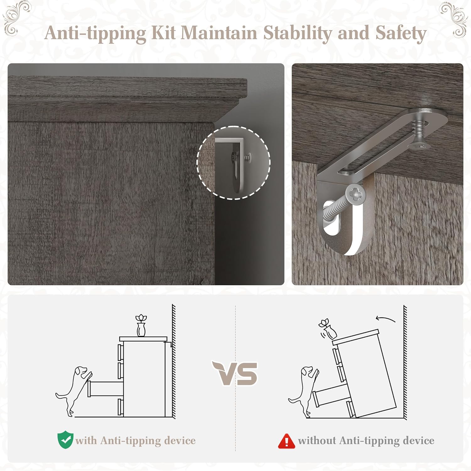 - [Easy assembly]: Includes clear instructions and all necessary hardware for quick setup. Plus, EnHomee dresser with anti-tip kit ensures added safety and security for your family. If you have any issues you meet, let us know without hesitation and you will get a satisfactory solution.