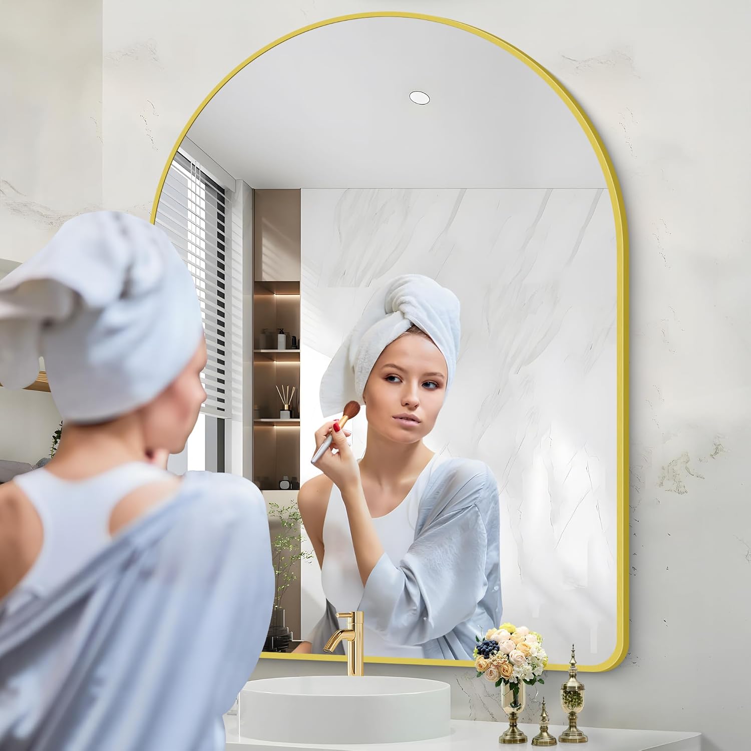 - Arched Bathroom Mirror Design: The Arched-top wall mirror makes your bathroom more elegant and classy, which especially attracts your eyes.bathroom mirrors for over sink,living room wall decor, gold arched mirror Ideal for wall mirrors decorative, gold mirror for bathroom make the space more brighter and spacious.
