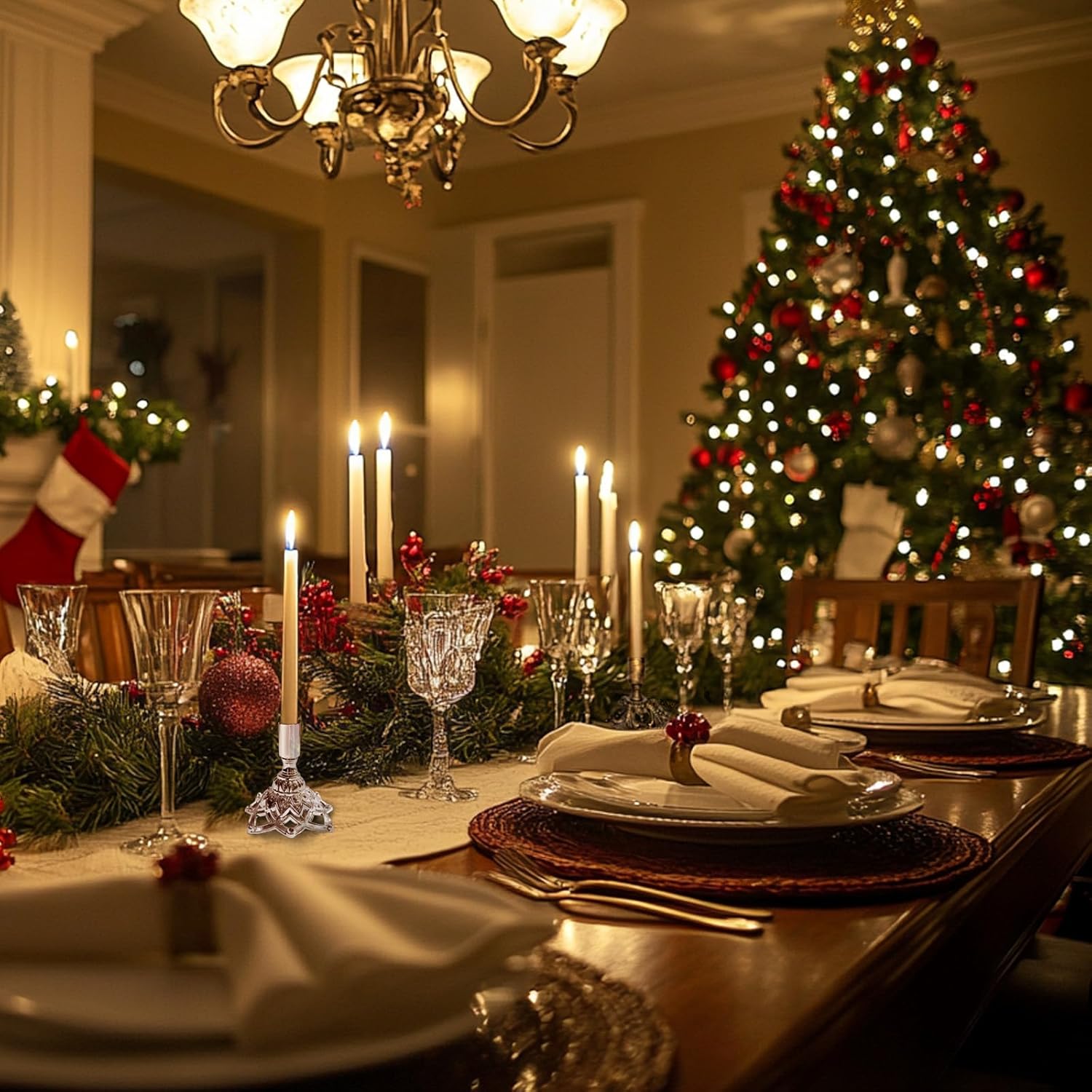 This elegant silver taper candle holder set brings a quiet, balanced atmosphere to everyday spaces. The reflective silver finish enhances candlelight without overpowering the room, creating a calm winter ambience that feels intentional and refined.